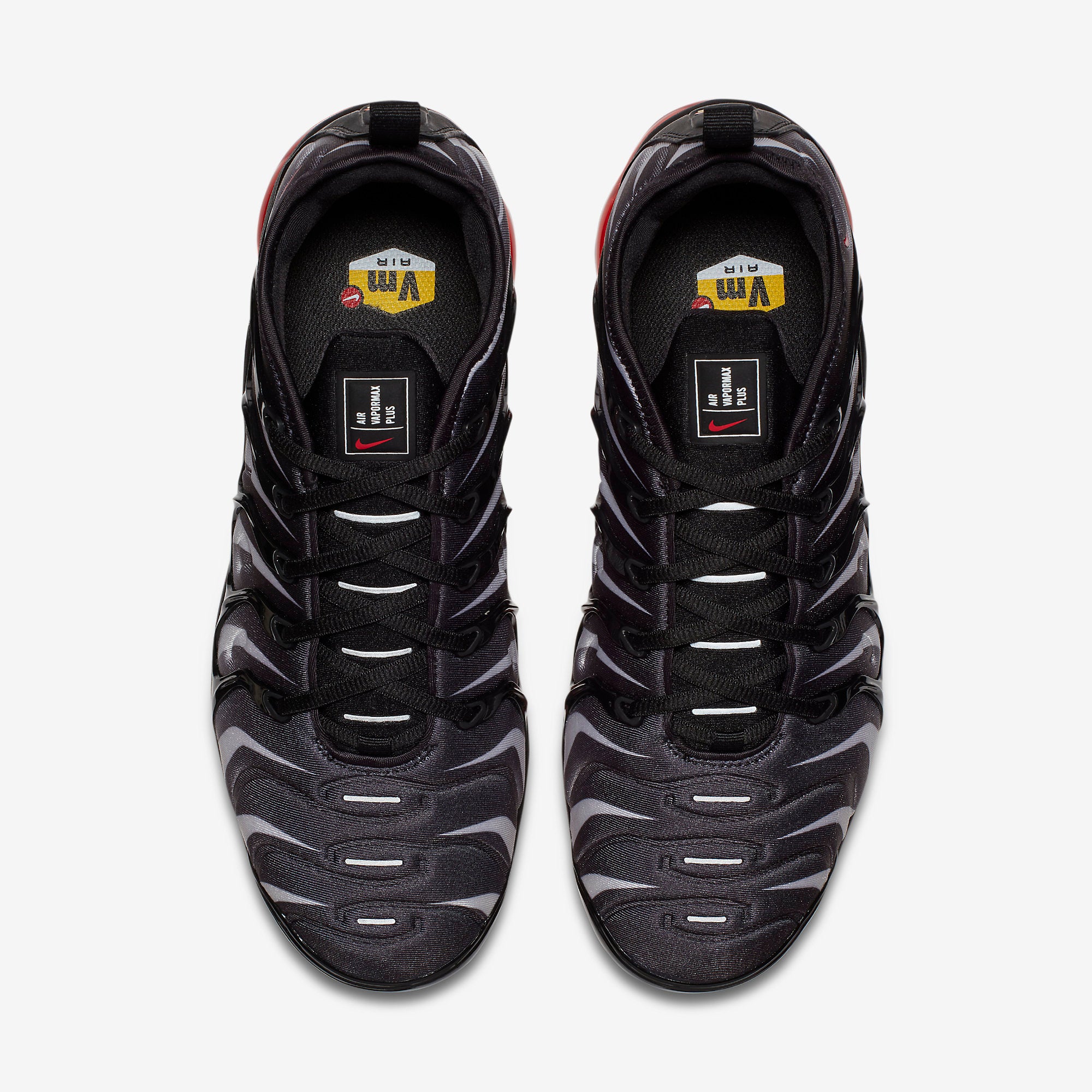 Το Nike Air VaporMax Plus Shark υιοθετεί ένα κυματιστό μοτίβο Plus με ένα άμεσα αναγνωρίσιμο τύπωμα "Red Shark Tooth". Το Plus Shark συνδυάζει ένα πλέγμα και νεοπρένιο στο πάνω μέρος με μια κόκκινη σόλα VaporMax που κρύβει την αντικραδασμική προστασία. Αυτό το runner διαθέτει μια έντονη γκρι και μαύρη διαβάθμιση στο πάνω μέρος. Τα προστατευτικά TPU που ενισχύουν τη βάση από νεοπρένιο διατίθενται σε μαύρο χρώμα, ενώ η αντίθεση παρέχεται από ένα κόκκινο Swoosh στην πλαϊνή περιοχή της φτέρνας. Κάτω από το οδοντωτό προστατευτικό υπάρχει ένα προεξέχον γραφικό με το δόντι του λευκού καρχαρία, που αντιπροσωπεύει ένα δάγκωμα από τον κορυφαίο αρπακτικό. Τα πράγματα είναι εξίσου ευφάνταστα πιο κάτω, όπου βρίσκεται μια ημιδιαφανής σόλα VaporMax σε speed red. Το κίτρινο λογότυπο VM στη φτέρνα ολοκληρώνει την τολμηρή αισθητική.